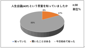 3)講義内容の理解 4)人生会議アドバンスケアプランニング(ACP)という言葉を知っていましたか